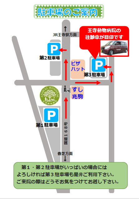 フィラリア予防のシーズンは第1・第2駐車場が満車になることもございます。